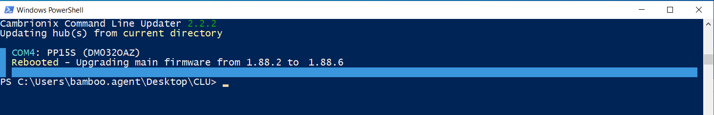The command line updater is useful to automated environments and can be used to set up scripts to check all your Cambrionix hardware is on the latest version of firmware and to update in the background, this process can be scheduled so that the updates will take place at the most convenient time to reduce downtime.